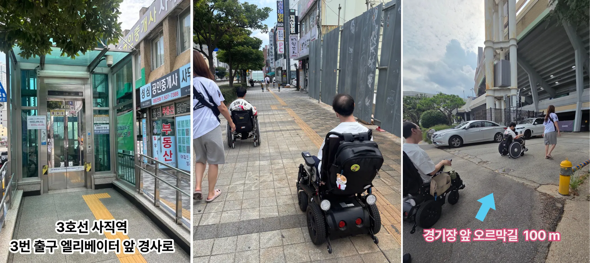 정문에서 3루 매표소까지 경사로가 있어 휠체어 이동에 무리 없음.