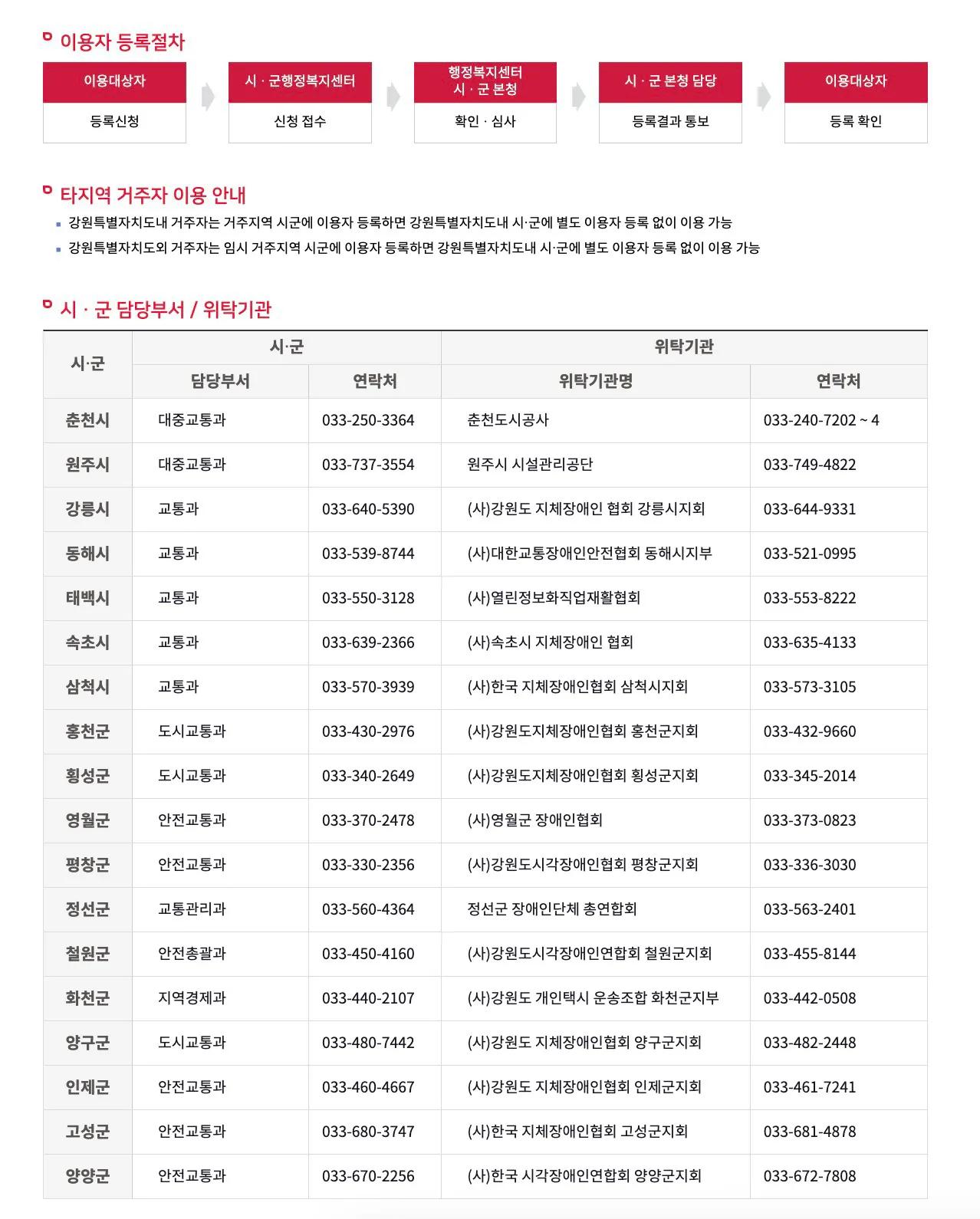 운영 기관 | 강원도 교통약자 광역이동지원센터 |