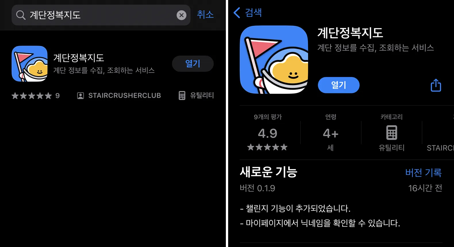 구글 플레이스토어, 애플 앱스토어에서 ‘계단정복지도’ 검색