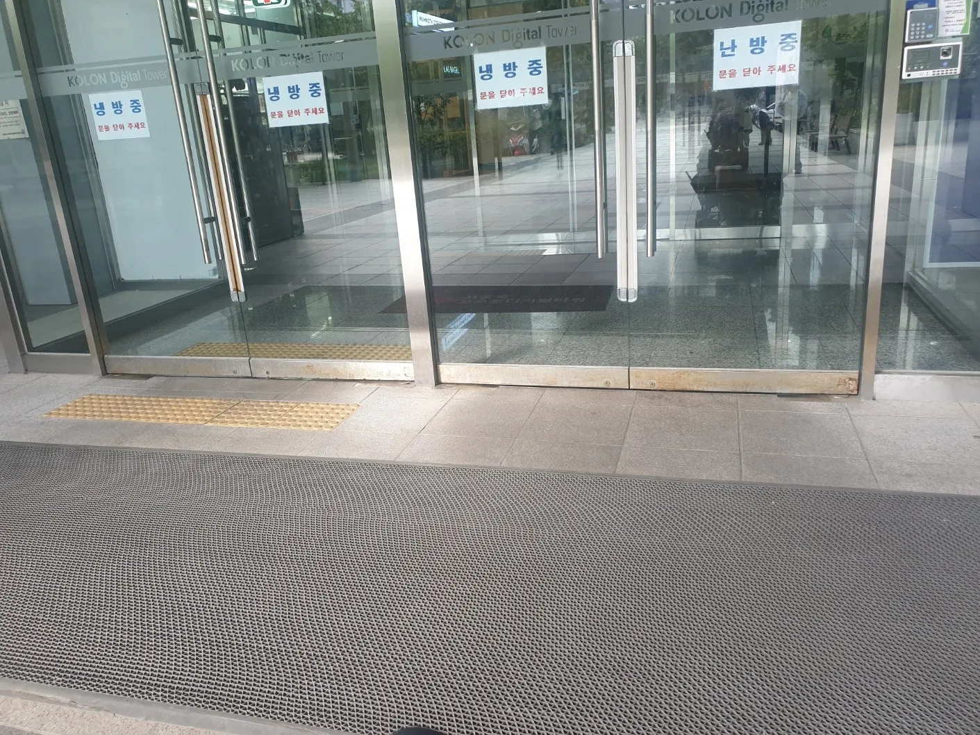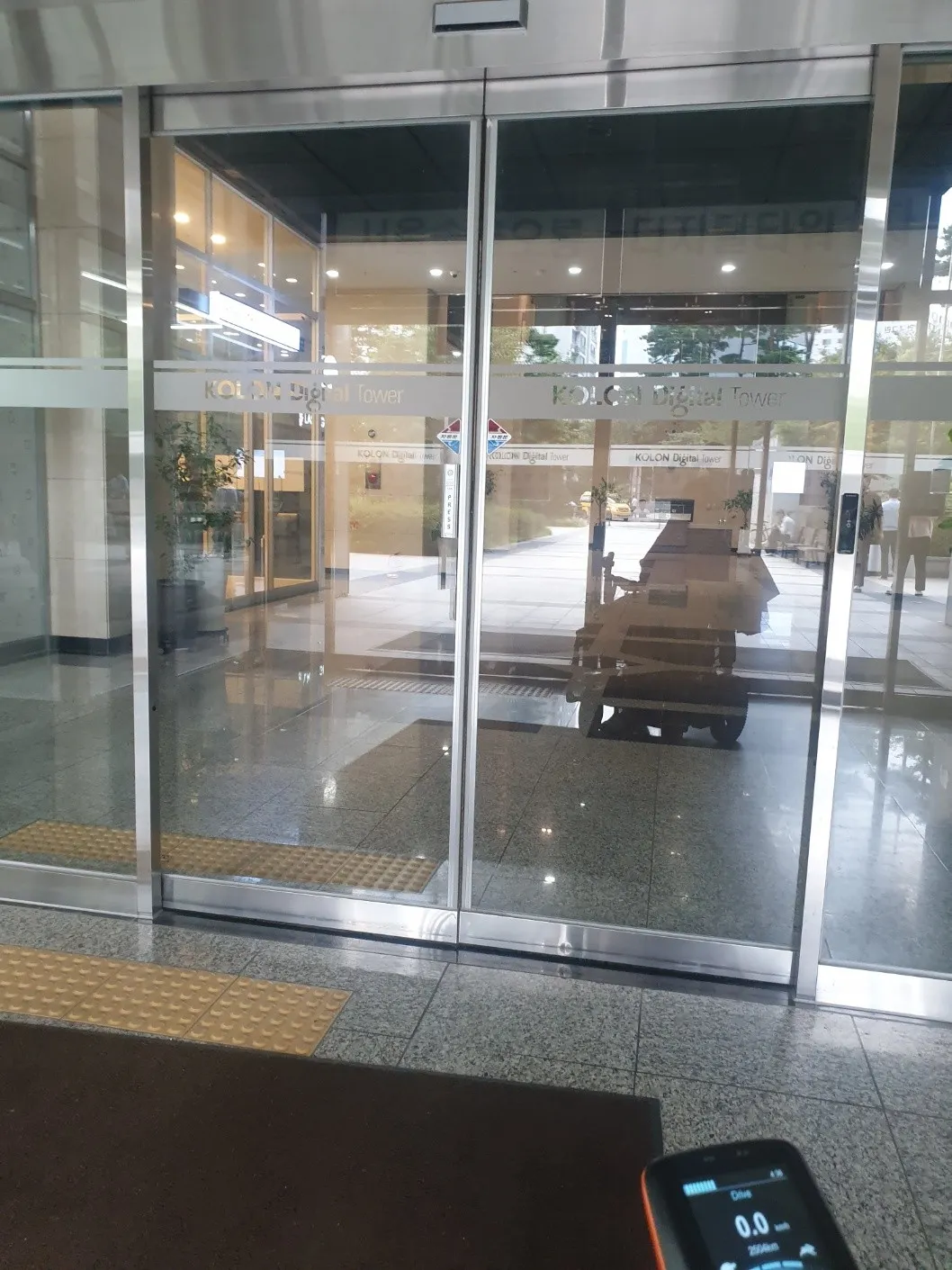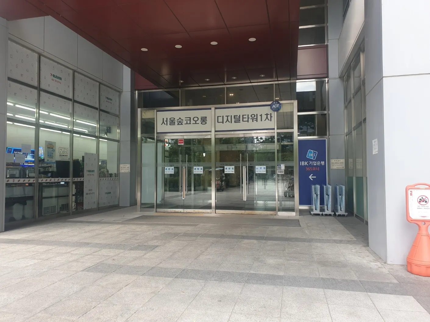 서울 코오롱디지털 1차 건물 입구 안에 있는 카페로 수동문이 2개 있습니다.