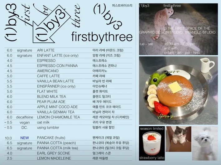 홍제역에서 다소 거리가 멀지만, 홍제천 카페를 찾는다면 접근성 좋은 퍼스트바이쓰리 추천!